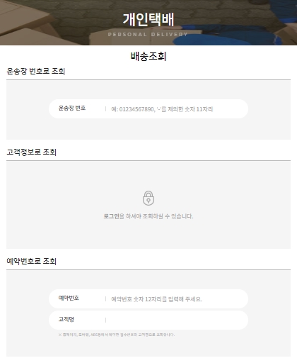 다음은 로젠택배 운송장조회에 대한 안내를 드리겠습니다. 개인택배를 기준으로 세가지 방법으로 조회할 수 있습니다. 첫번째는 운송장 번호로 조회입니다. 하이픈을 제외한 숫자 11자리를 입력해주세요. 두번째는 고객정보로 조회입니다. 로그인 후 해당 서비스를 이용할 수 있습니다.