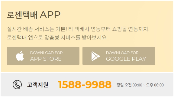 로젠택배는 어플리케이션도 제공하는데요, 실시간 배송서비스와 타 택배사 연동 및 쇼핑몰 연동까지 어플리케이션으로 맞춤형 서비스를 받아볼 수 있습니다. 택배사 이용과 관련해서 문의사항이 있으시면 고객지원센터 1588-9988번으로 연락해보세요. 운영시간은 평일 09시부터 18시까지이고, 팩스번호는 02-3415-8919번입니다.